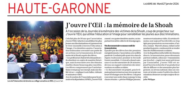 Marcel, enfant caché lors de la deuxième guerre mondiale, et sa femme Simone vont à la rencontre d'élèves de 1ère et terminale Bac Pro du Lycée Professionnel Elisabeth et Norbert Casteret - Saint-Gaudens. Projet contre le racisme, l'antisémitisme, pour la lutte contre les discriminations et l'endoctrinement.
